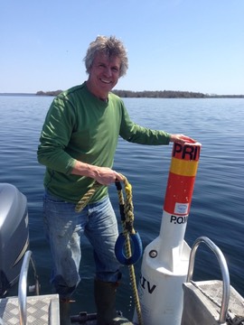 Pat Coyne prepares to launch the Wolfe Islander Buoy..